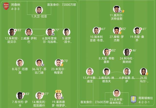 - 阿森纳vs维拉:哈弗茨替补,哲凯赖什、加布里埃尔、桑乔首发